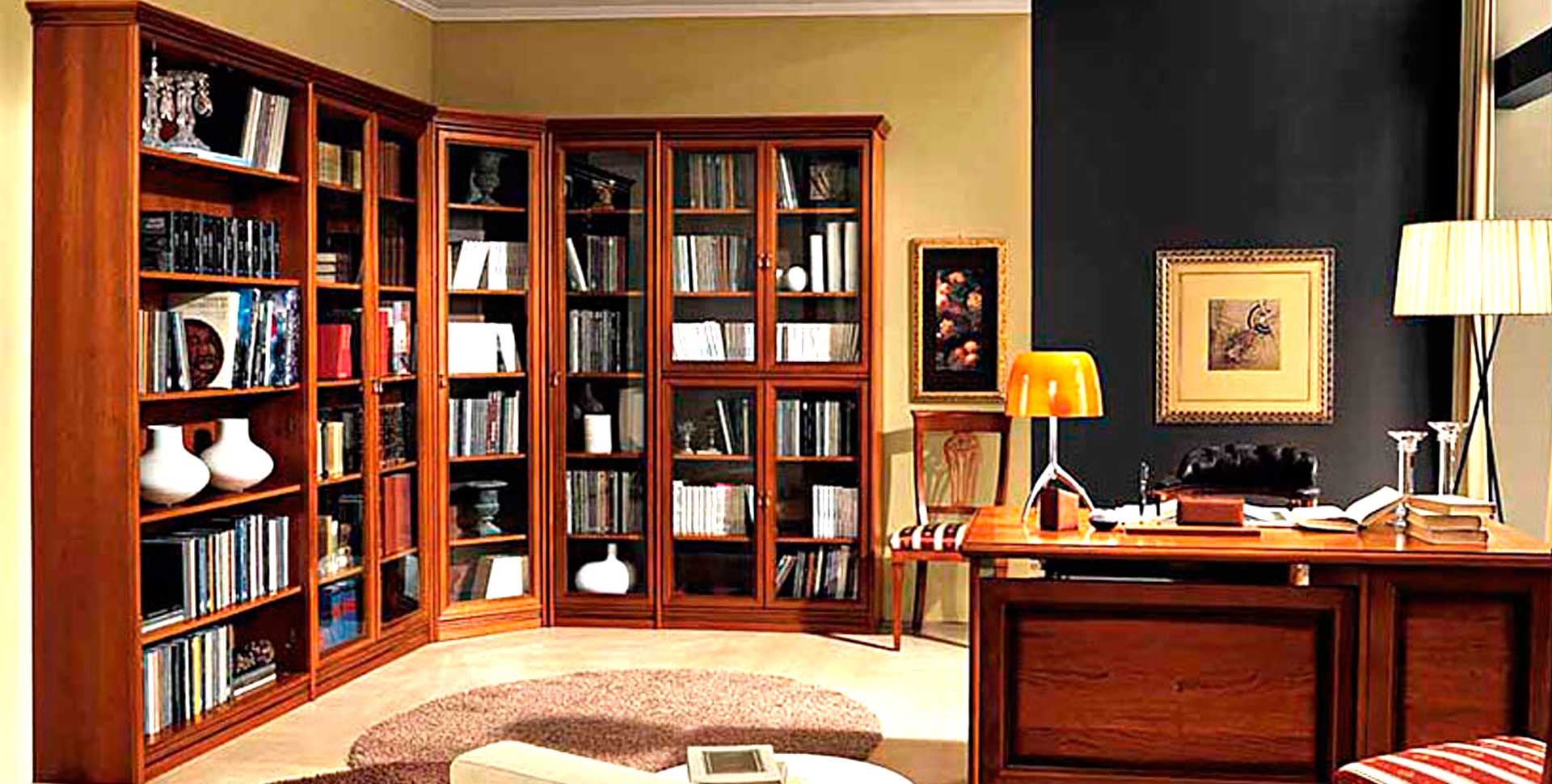 Фабрика итальянской мебели Camelgroup представляет книжные шкафы, столы, стулья и другую мебель для кабинетов и библиотек в коллекции Nostalgia. Шкафы имеют глубину 30 сантиметров (34 сантиметра с топом). Боковины внутри и снаружи шпонированы орехом. Полки книжных шкафов имеют толщину 25 миллиметров, и также шпонированы орехом с обеих сторон. Опрокидывание больших по длине модульных полок и деформацию под собственным весом книг предотвращает крепежная планка с полкодержателем по центру. Библиотека прекрасно сочетается со спальней и детской комнатой колелкции Ностальжи.