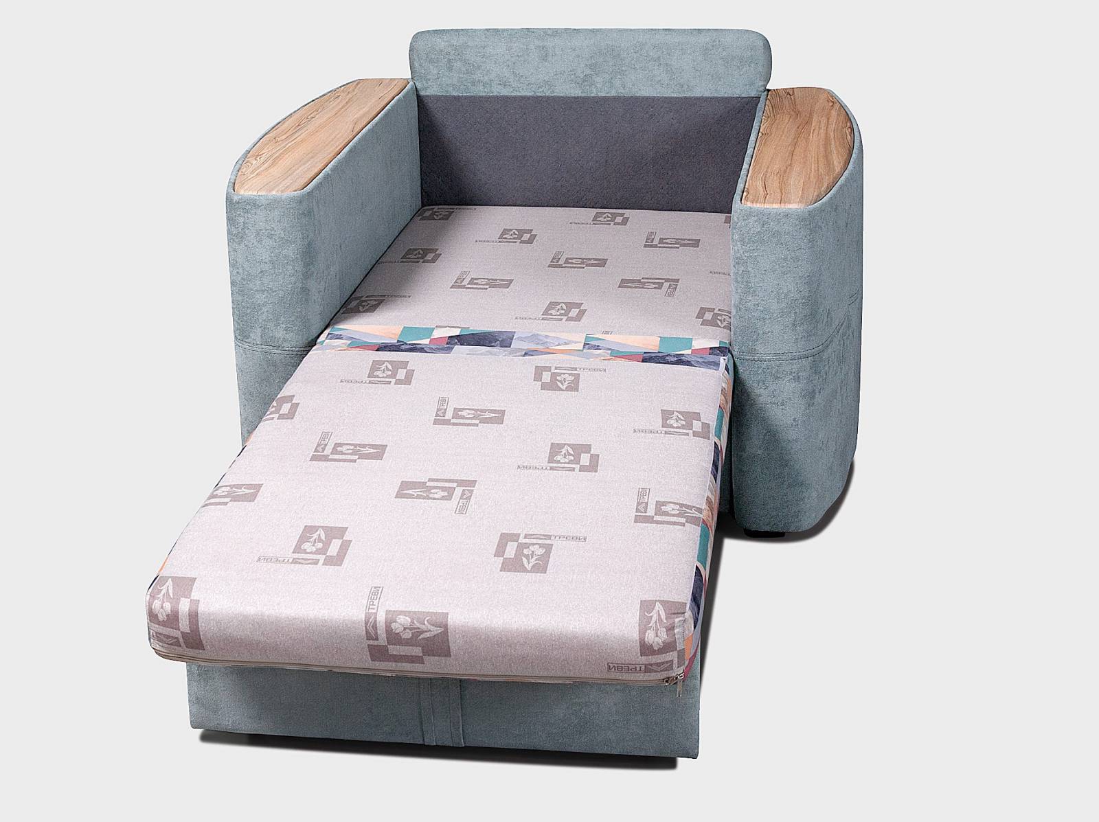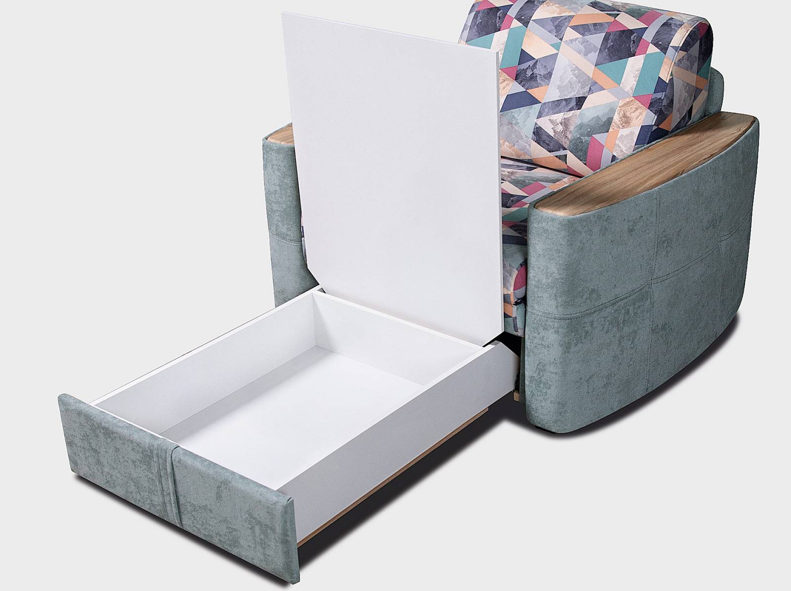 Кресло легко трансформируется в полноценное ровное спальное место. Спинка защищает во время сна от соприкосновения со стеной. Под сидением размещается ламинированная ниша для белья.