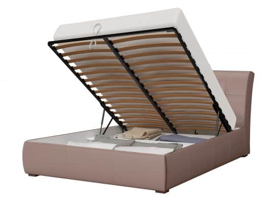 Интерьерная кровать «Бьянка». Изголовье кровати является мягким. Наполнение — поролон 10-20мм. Облицована обивочным материалом (экокожа). Внутренняя часть- флизелином. Основание кровати является мягким. Наполнение — поролон 10-20мм. Облицована обивочным материалом (экокожа). Внутренняя часть- флизелином. Кровать укомплектована ящиком для белья и ортопедической решеткой с подъемным механизмом.