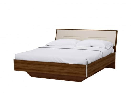 Размер спального места 1610х2010. Корпус ЛДСП 18 мм орех барон. Центральная и боковые царги — ЛДСП 25 мм. орех барон. Профиль ножной беж песочный. Мягкая вставка — бежевый кожзам. Спальное место оборудовано ортопедическим основанием.