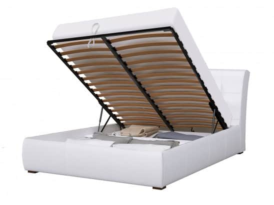 Интерьерная кровать «Бьянка». Изголовье кровати является мягким. Наполнение — поролон 10-20мм. Облицована обивочным материалом (экокожа). Внутренняя часть- флизелином. Основание кровати является мягким. Наполнение — поролон 10-20мм. Облицована обивочным материалом (экокожа). Внутренняя часть- флизелином. Кровать укомплектована ящиком для белья и ортопедической решеткой с подъемным механизмом.