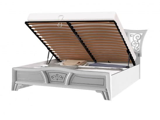 Размер спального места — 1810х2012. Представляет собой основание из левой и правой царг, двух планок и ножной и головной спинки кровати. Изголовье и изножье кровати выполнено с нанесением 3D шелкографии с вкраплениями из алмазной крошки. Возможна установка мягкой декоративной вставки. Кровать укомплектована ящиком для белья и ортопедической решеткой с подъемным механизмом.