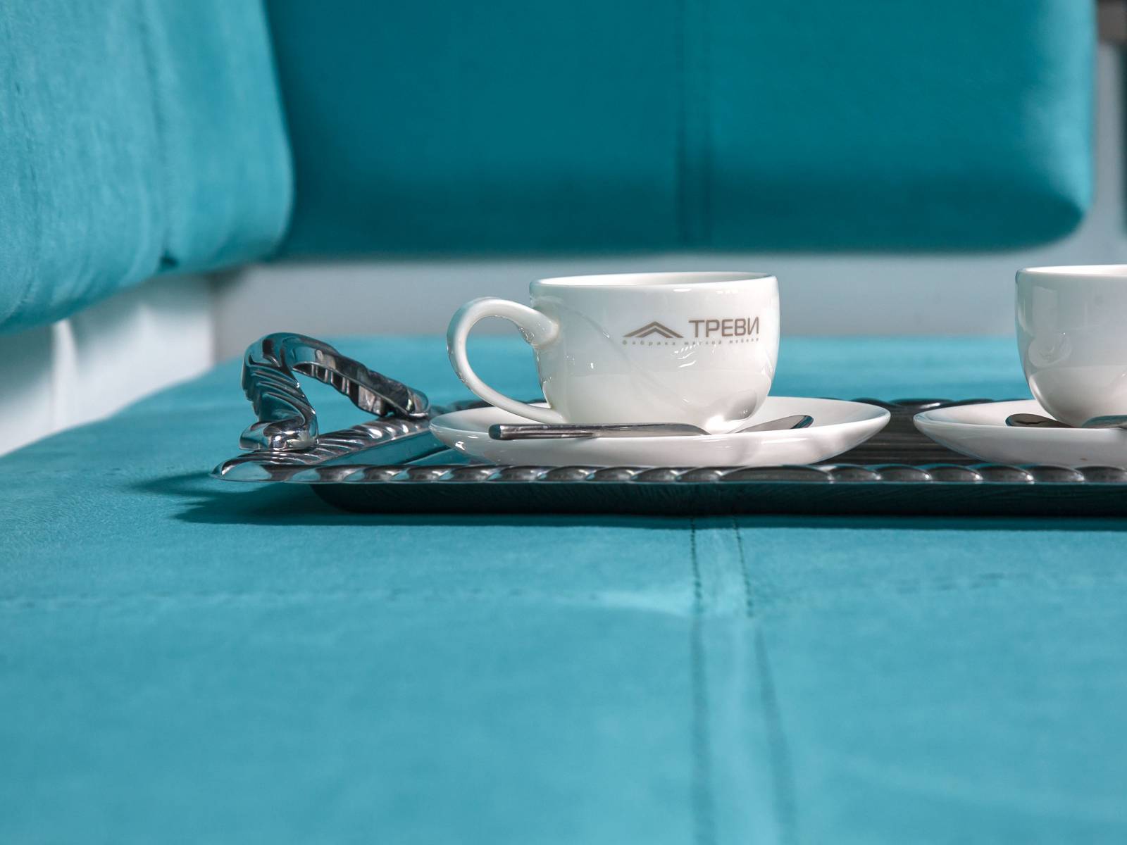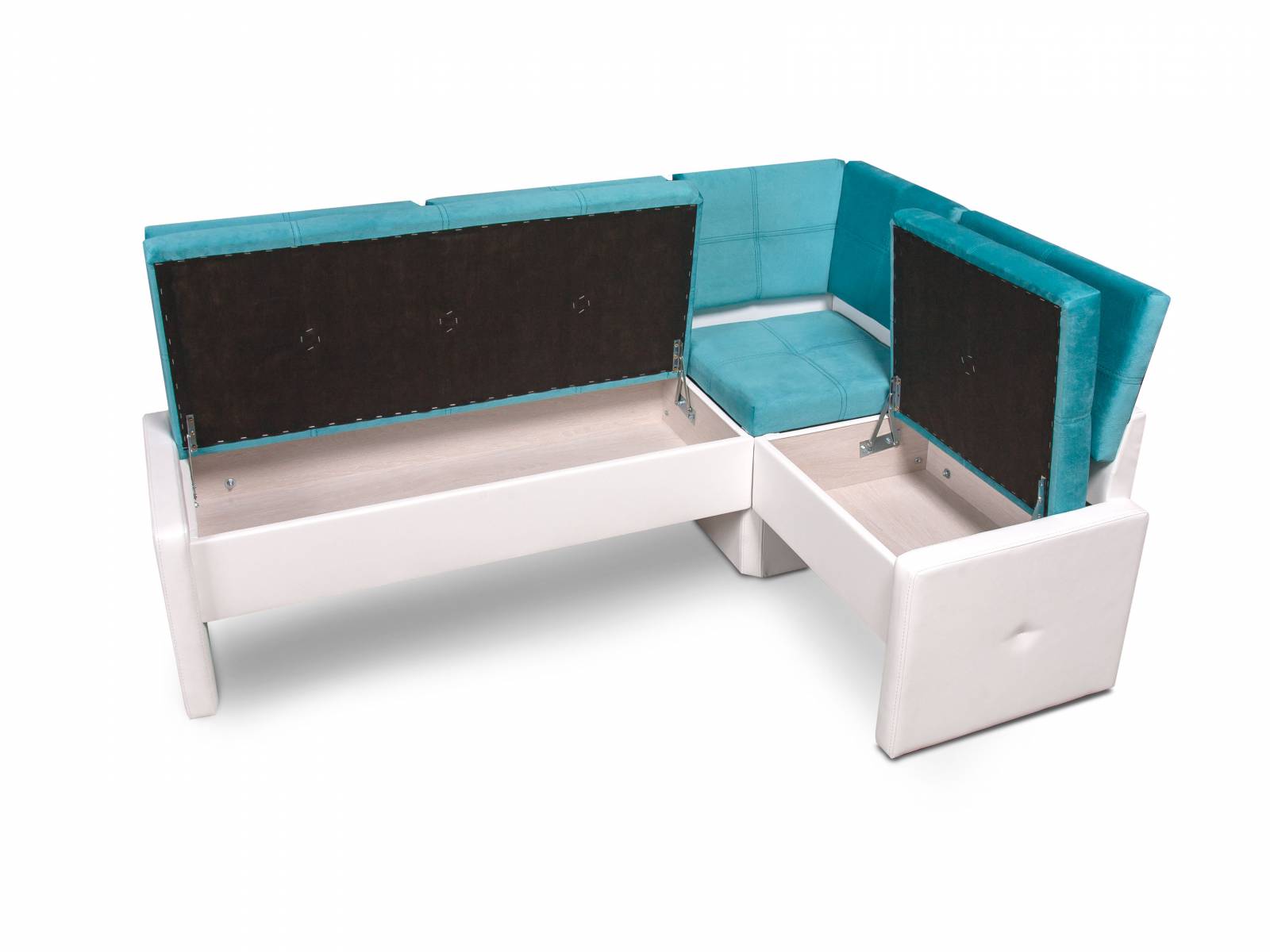 Сторона угла взаимозаменяемая. Под сидениями размещаются ламинированные ниши для хранения вещей.