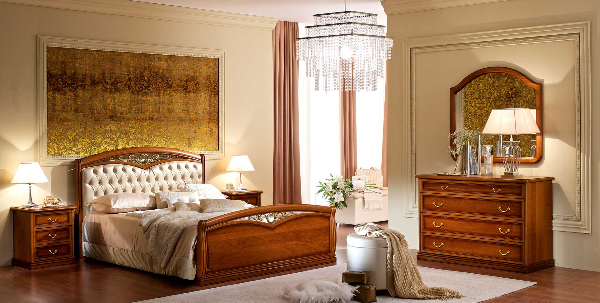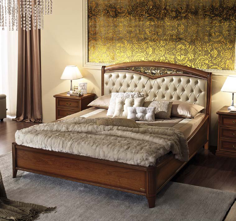 Лицевые панели шкафов и тумб интарсированы узором из шпона светлый орех. Боковые и верхние карнизы изготовлены из массива дерева Абачи. При ручной окраске с эффектом полуоткрытых, искусственно состаренных пор используется матовый полиэстер. Изножья и изголовья кроватей имеют изящный изогнутый фриз. Изголовья изготовлены из дерева, из дерева с коваными элементами, либо из дерева в классической мягкой обивке «капитоне». Итальянская спальня NOSTALGIA, как и вся продукция фабрики Camelgroup спроектирована и изготовлена в Италии. Фурнитура и комплектующие также изготовлены в Италии.