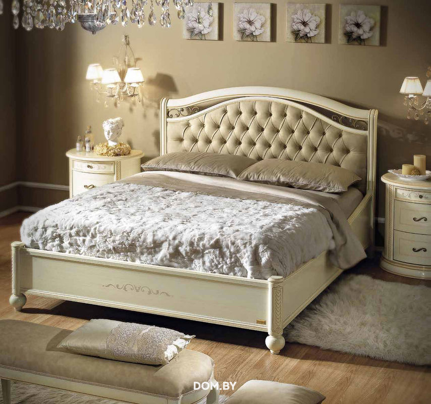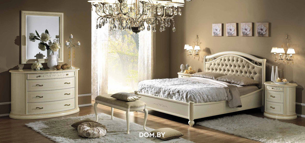Спальня «Сиена Аворио» — часть программы Siena итальянской фабрики Camelgroup. Предметы мебели этой коллекции выполнены из липы и оформлены в цвете аворио (слоновой кости). При этом на поверхности дерева более видны более тёмные волокна, просвечивающие сквозь покрытие, что придаёт цвету деревянных поверхностей особую теплоту.