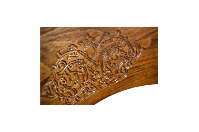 Фигурная жесткая спинка, украшена резьбой по дереву и оформлена декоративной профильной выборкой. Классический, деревянный стул впишется в интерьер как на современной кухне, так и в классических обеденных группах.Размеры: длина: 430 мм, ширина: 460 мм, высота: 900 мм