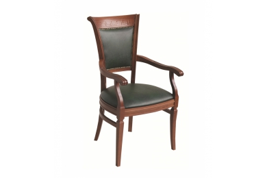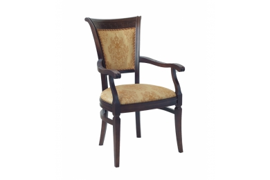Богатая резьба на подлокотниках, спинке и ножках, удобное сиденье и высокая спинка, все говорит о том, что владельцы этого деревянного стула — люди, ценящие традиции и комфорт. Стул с подлокотниками «Агар-2» — это великолепный образец стульев в столовую с классическим интерьером.Размеры: длина: 490 мм, ширина: 560 мм, высота: 980 мм