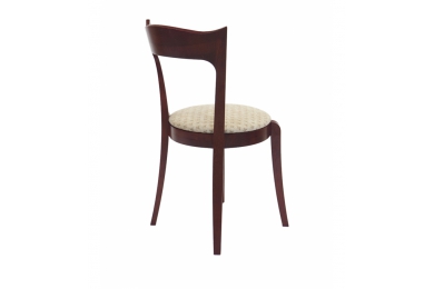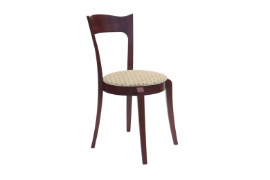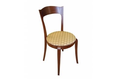 Стул с деревянной фигурной спинкой из массива бука «Жаклин». Сиденье мягкое, круглое, обито тканью (кожей) на выбор.
