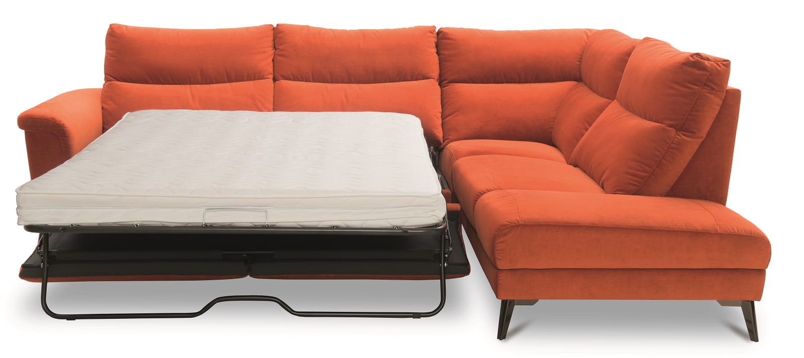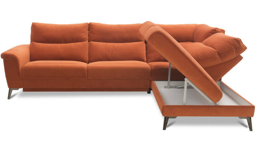 Угловой диван имеет функцию сна – способ раскладывания – итальянский механизм с прикрепленным матрасом.Угловой диван имеет ящик для постельного белья или одеял, хотя при этом его можно использовать как дополнительное место для хранения совершенно иных вещей.Угловой диван оснащен функцией сна – каркас итальянского типа с матрасом на случай, если мы планируем кого-то приютить или же если диван является единственным предметом мебели в квартире, выполняющим роль кровати.