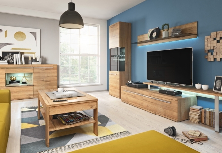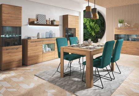 Коллекция «AMUR» была создана для современных, но уютных интерьеров. Фронты имеют прочную и элегантную мембранную фольгу в теплом дубовом цвете внука в сочетании с металлическими хромированными ручками.