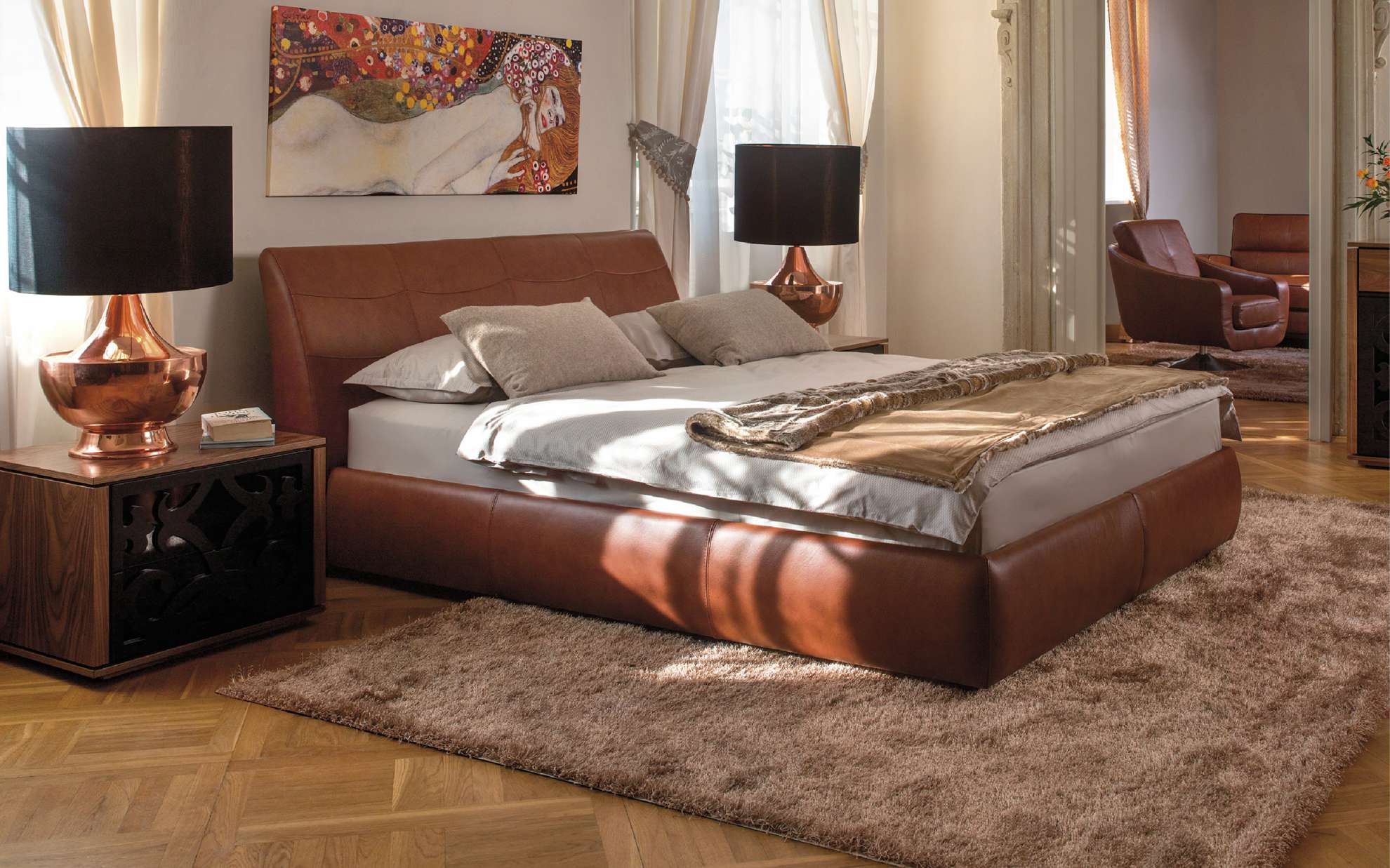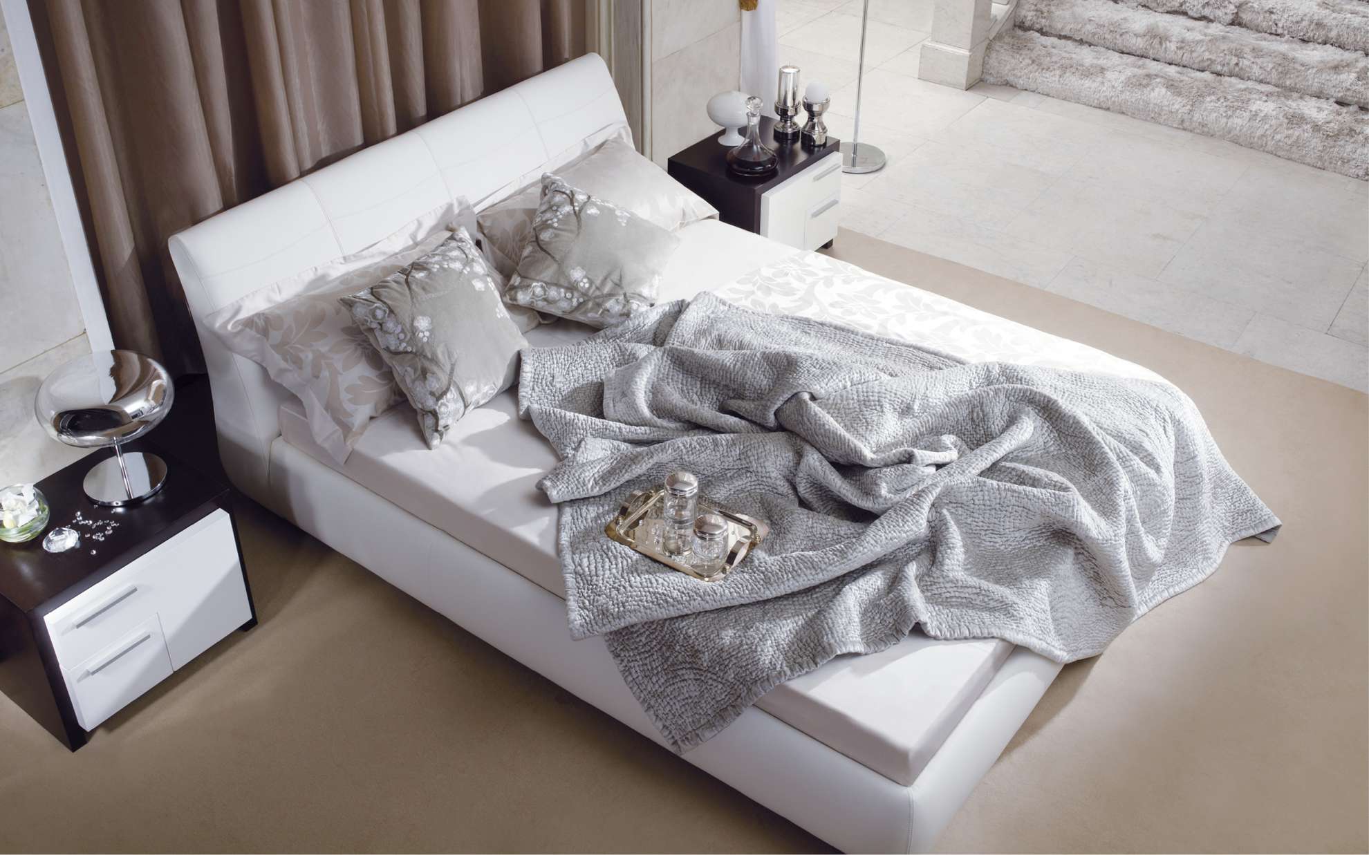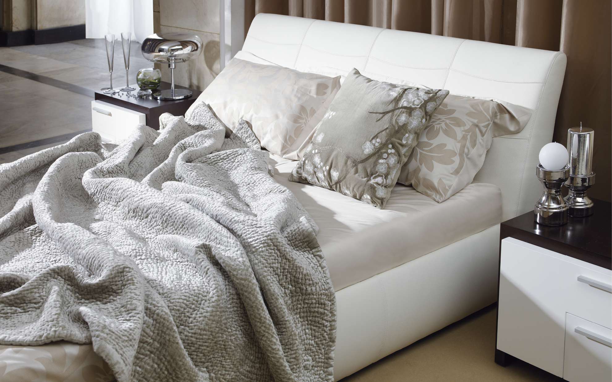 Кровать в обивке • Размеры матраса 160/180 см x 200 см • Дополнительное оборудование: ящик для постельного белья открывается без усилия благодаря современной конструкции с газовыми циллиндрами.