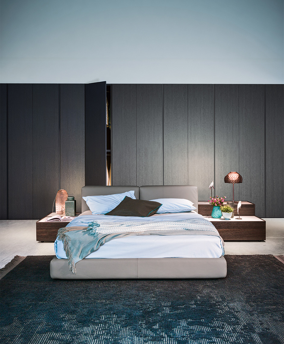 California — это кровать с мягкой обивкой в версии сомье или с металлическими ножками. Эта кровать может быть укомплектована удобной и функциональной подъемной головной спинкой. Широкий выбор предлагаемых размеров.