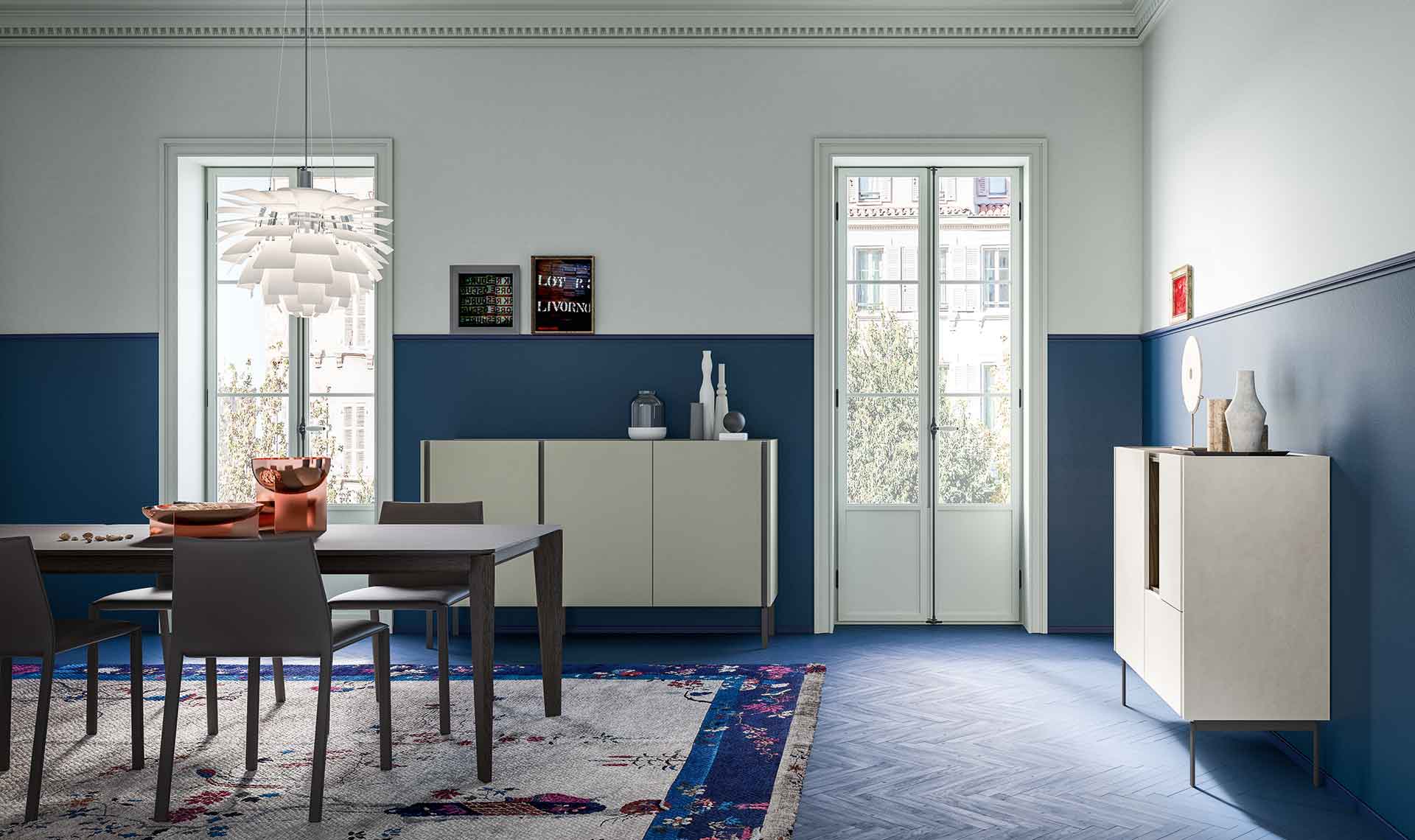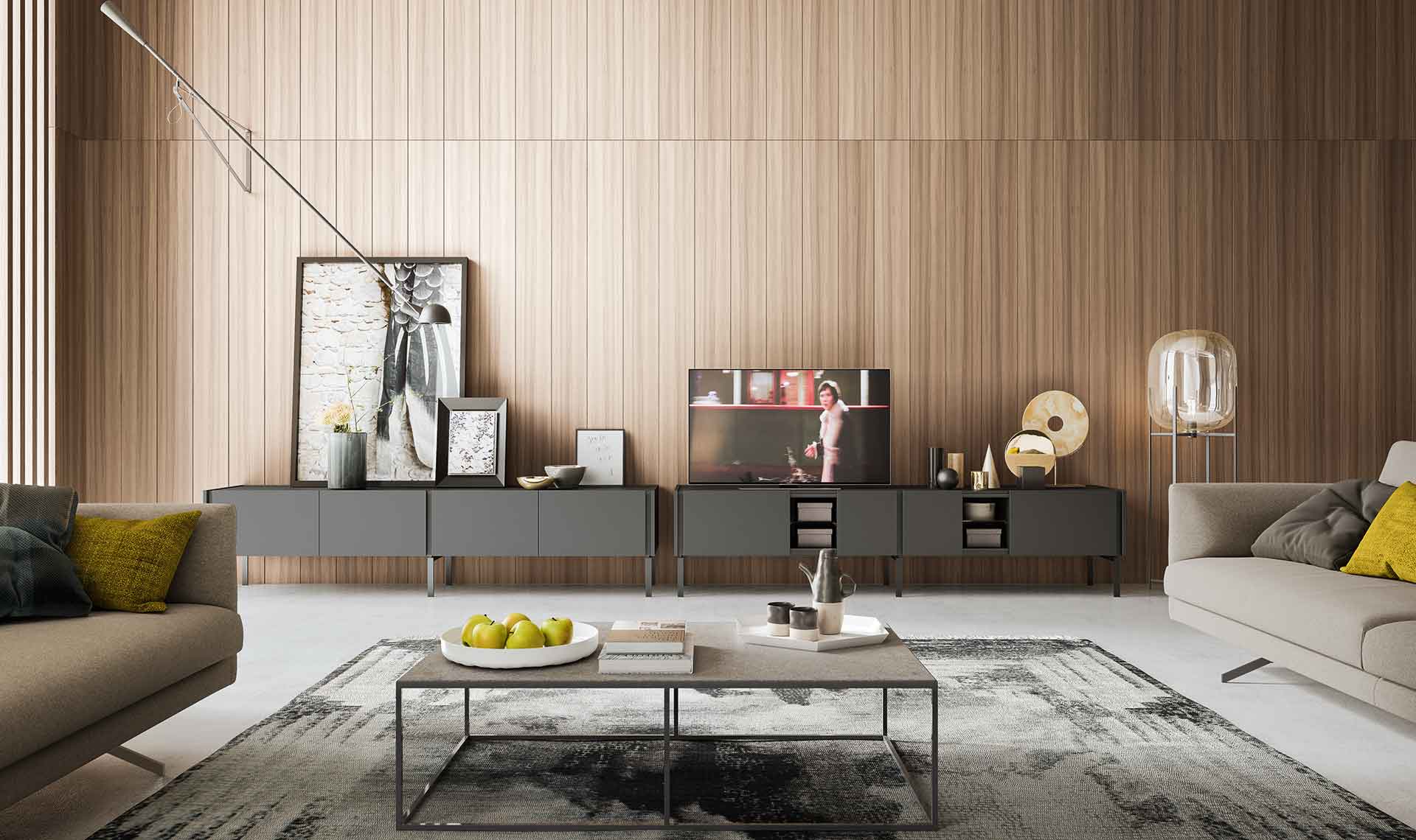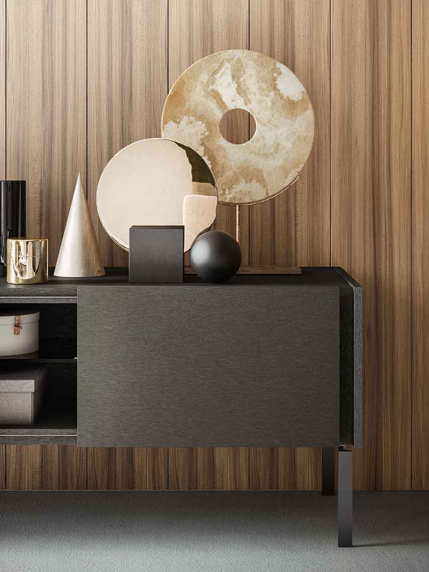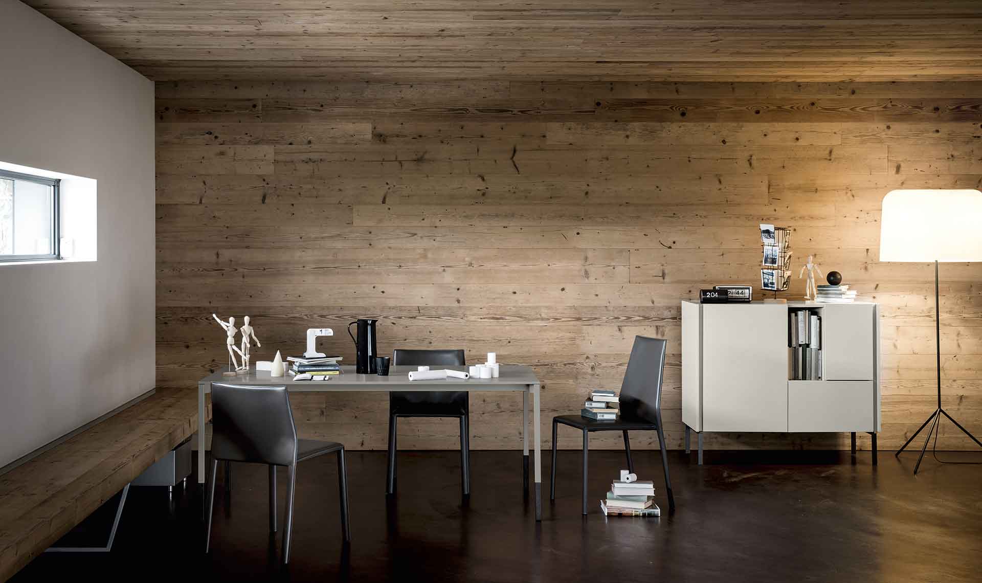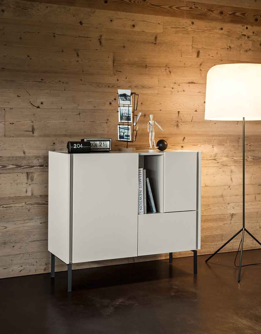 Da-Do — программа для гостиной, состоящая из тумб для телевизора, буфетов и тумб-комодов, устанавливаемых на полу на металлических ножках или подвешиваемых к стене. Da-Do допускает высокую степень индивидуализации благодаря сочетанию двух отделок — одной для фасадов и другой — для столешницы и желоба, который служит захватом для открытия дверей. Предлагаются также открытые отсеки с контрастной отделкой.
