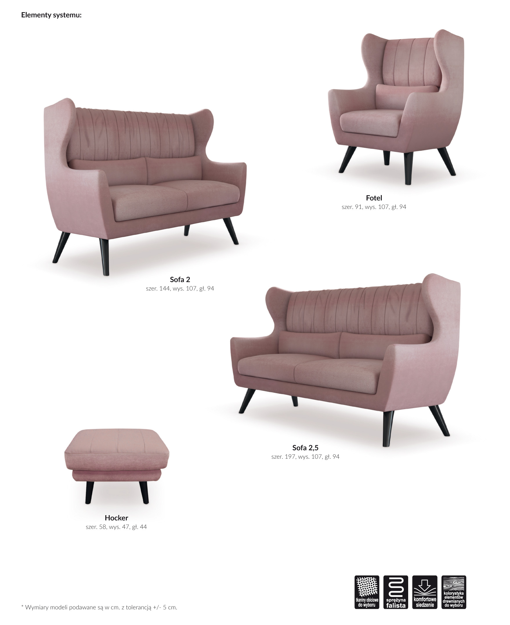 Eren — это коллекция удобной мебели для гостиной. Швы на спине и деревянные ножки характеризуются предметом мебели. Эрен выглядит достойно в любом интерьере, она придает характер и элегантность. Коллекция доступна только в тканевых покрытиях.
