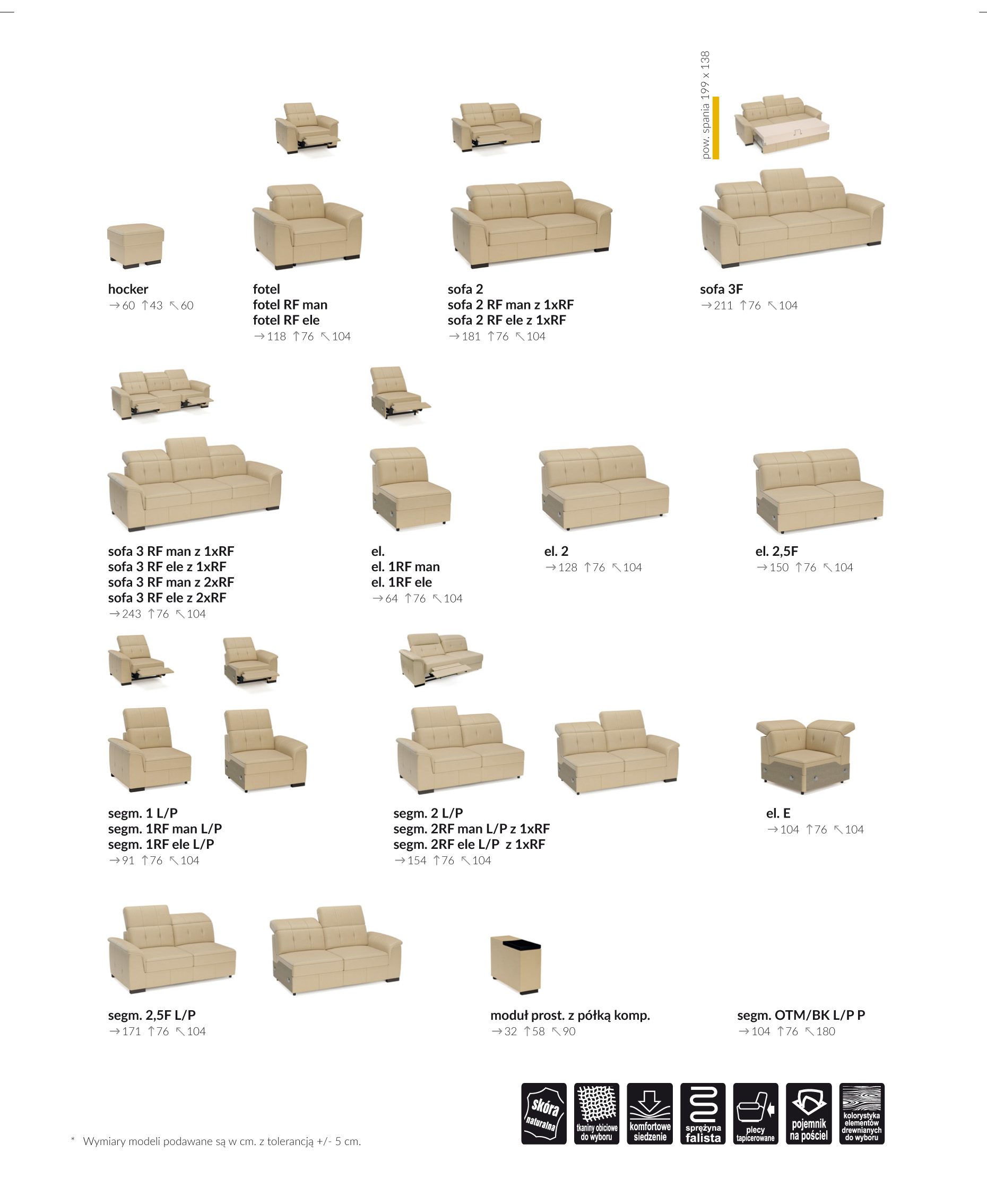 Модульная структура коллекции Ferro позволяет создавать комплекты мебели, идеально подходящие для интерьеров и ожиданий пользователей. Отдельные модули отличаются простой формой, которая обогащается привлекательными подлокотниками, сшиванием и выстегиванием. Система Ferro обеспечивает высокий комфорт благодаря функции релаксации и позволяет вам отдыхать ночью. Коллекция доступна в широком ассортименте натуральной кожи и тканей.