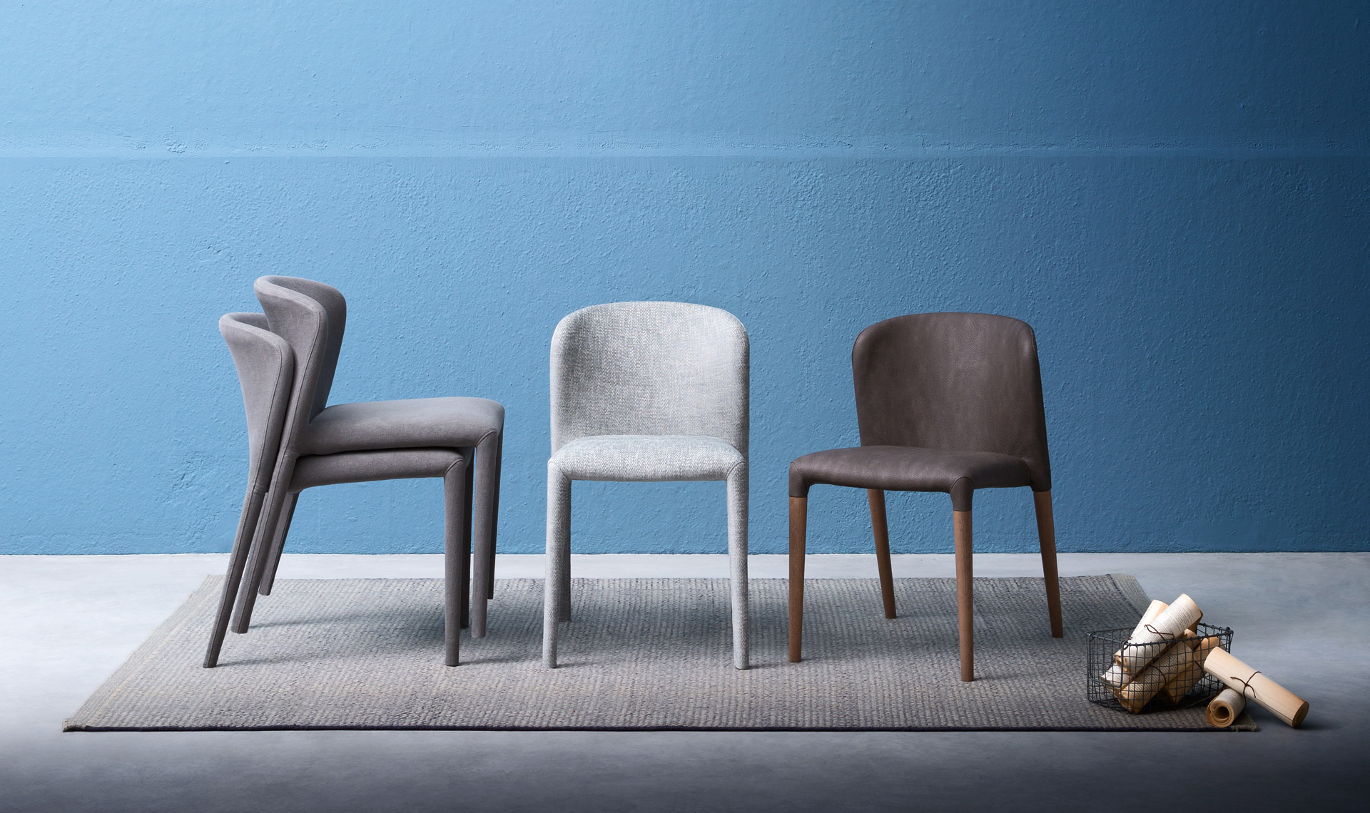 Karol и Karol wood — мягкие со снимаемой обивкой стулья в тканевых вариантах. Karol wood характеризуется сочетанием деревянных ножек с обивкой сиденья и спинки.