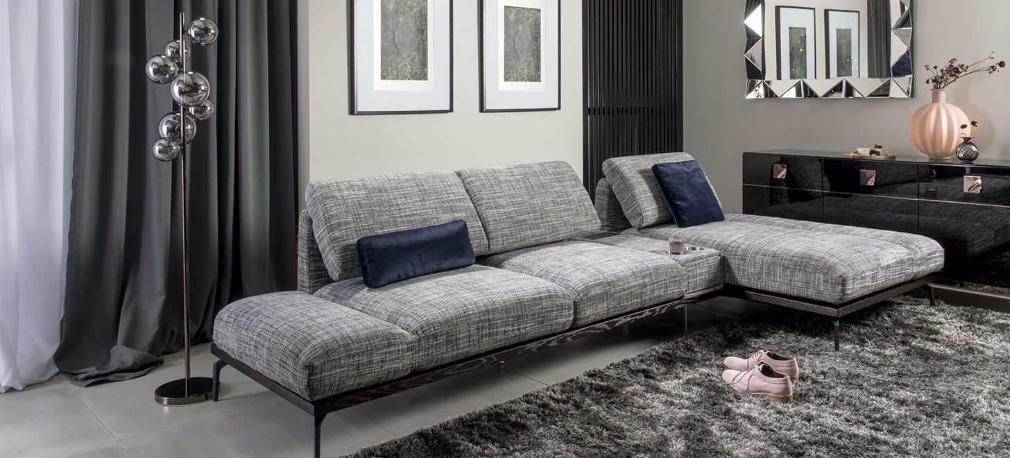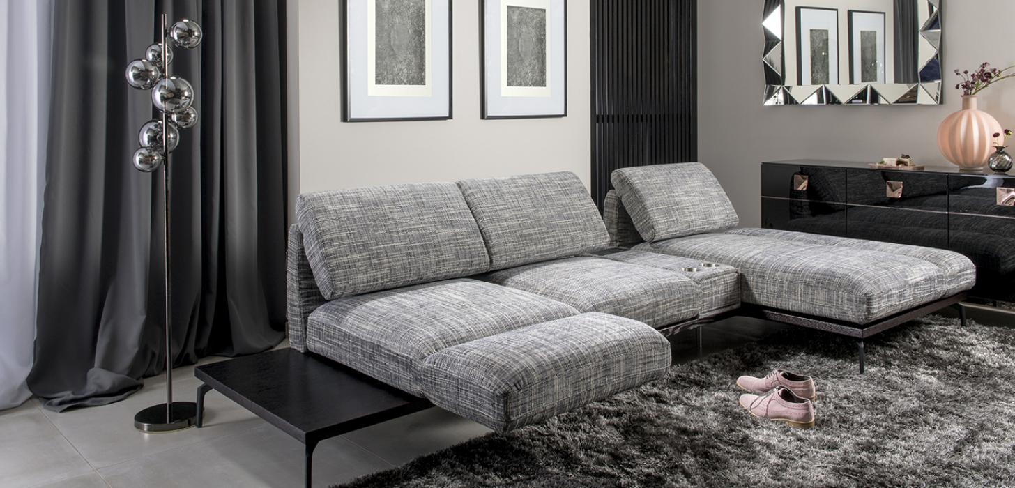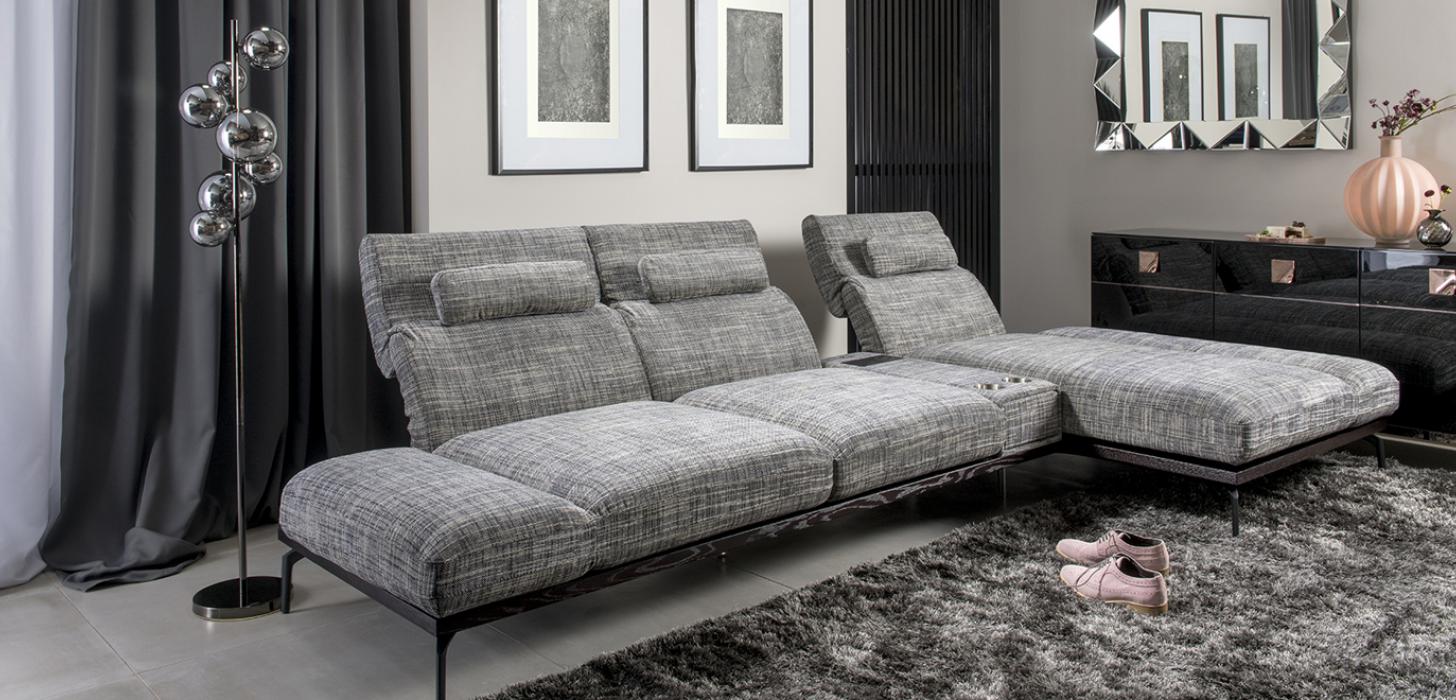 3-х местные диваны, подножки, модули для продольного или углового расположения • Модуль с удлиненным сидением (шезлонг), дающий возможность комфортно выпрямить ноги • Функция поворота сиденья на 90 градусов, позволяющая трансформировать подлокотник в подножку • Регулировка высоты и наклона спинки • Регулировка угла наклона подлокотников • Возможность выбора из широкой цветовой гаммы натуральной кожи и различных типов тканей • На выбор: боковые выдвижные ящики в системе push-pull с тихим закрытием • Опция: ящик со светодиодной лампой, с панелью питания с разъемом USB и индукционным зарядным устройством или с двумя контейнерами из нержавеющей стали • Опция: дополнительная подушка в верхней части спинки, которая выполняет функцию подголовника • Основание – деревянная платформа с отделкой натуральным дубовым шпоном • Металлические ножки.