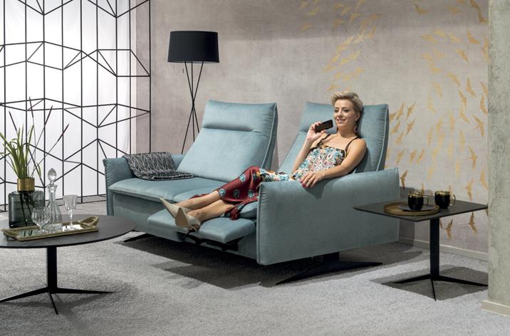Комплект для отдыха, состоящий из 3-местных диванов • Модули, сопоставленные в продольной или угловой системе • Модуль с удлиненным сиденьем (шезлонг), дающий возможность удобного выпрямления ног • Угловой модуль с терминалом • Функция электрически раздвижной спинки с выдвижением подножки • Функция регулировки угла наклона спинки и регулировка угла наклона подголовника • Ножки: металлические, хромированные графитом или полозья с порошковым покрытием • Опция: питание механизма передвижения спинки сиденья с помощью аккумулятора • Опция: управление передвижением спинки с помощью пульта дистанционного управления (Bluetooth).